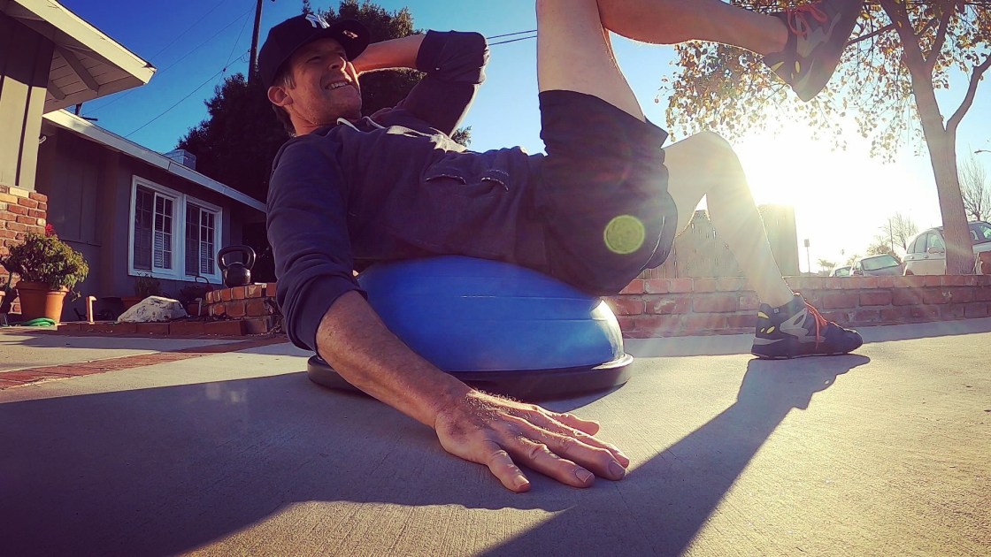 - ABS- 1) 25 Sit ups with basketball extended overhead at the bottom of the move. bring the ball up and over with straight arms as you sit up and extend your arms to reach the ball out in front of you as far as you can to squeeze the rep at the top and bring it all back down so you are lying on your back with the ball extended out. 2) 30 Russian twists touching the basketball to the ground on each side of you. You can also just extend the ball out in front of you and slowly swing it from side to side out in front of you with arms extended. 3) Ankle touches. Do 30. Get in a crunch position with feet on the ground and reach up to touch each ankle with the same side hand. Keep the abs engaged in a semi crunch but focus on the side to side squeeze to work obliques.